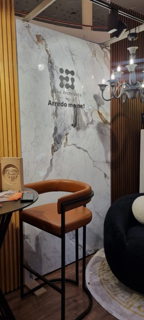 Within the sector of interior furnishing, the role of the architect is fundamental in shaping spaces that are both functional and aesthetically refined. For this reason, our participation in the fair aimed to present our studio’s vision and approach to interior design, bringing our ideas and experience closer to potential clients and collaborators.